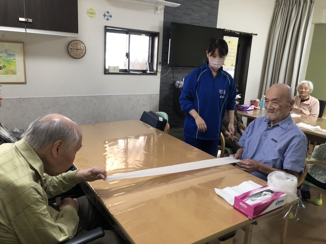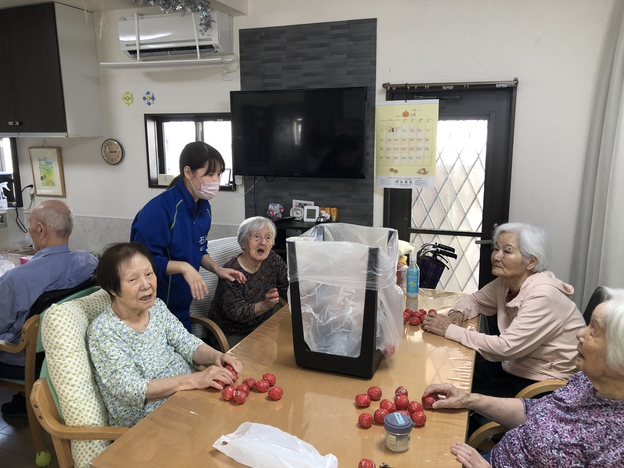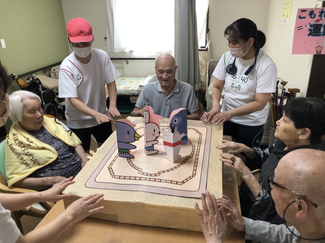 10月は運動会を開催しました。紙相撲、トイレットペーパー引き、玉入れなど懐かしんで参加されました。