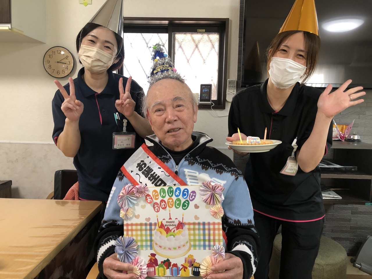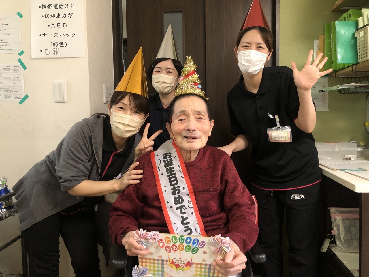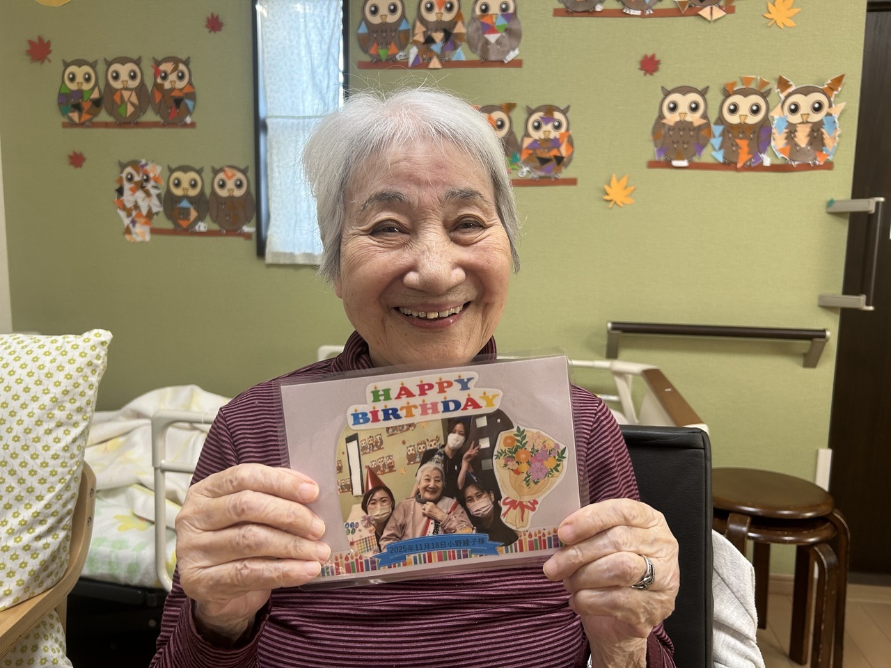 皆さんでお祝いした後は職員と写真撮影をして、記念にプレゼントさせて頂いています。