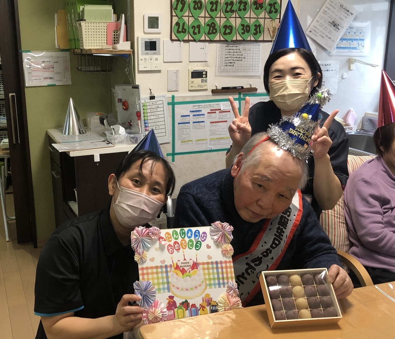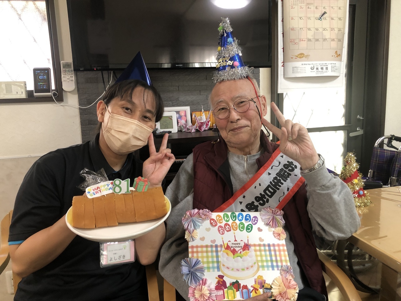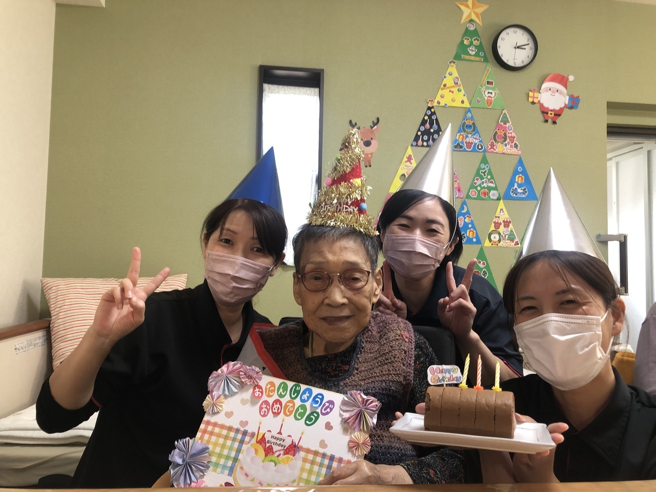 皆さんでお祝いした後は職員と写真撮影をして、記念にプレゼントさせて頂いています。