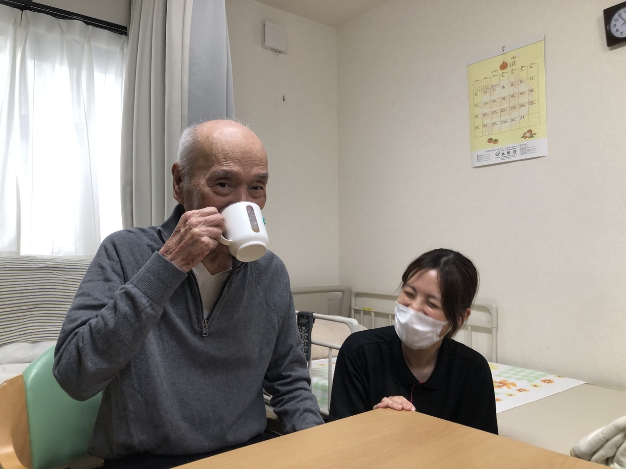 身体の機能を維持する観点から、利用者様の側に寄り添い、水分補給の管理をしっかり行なっています。